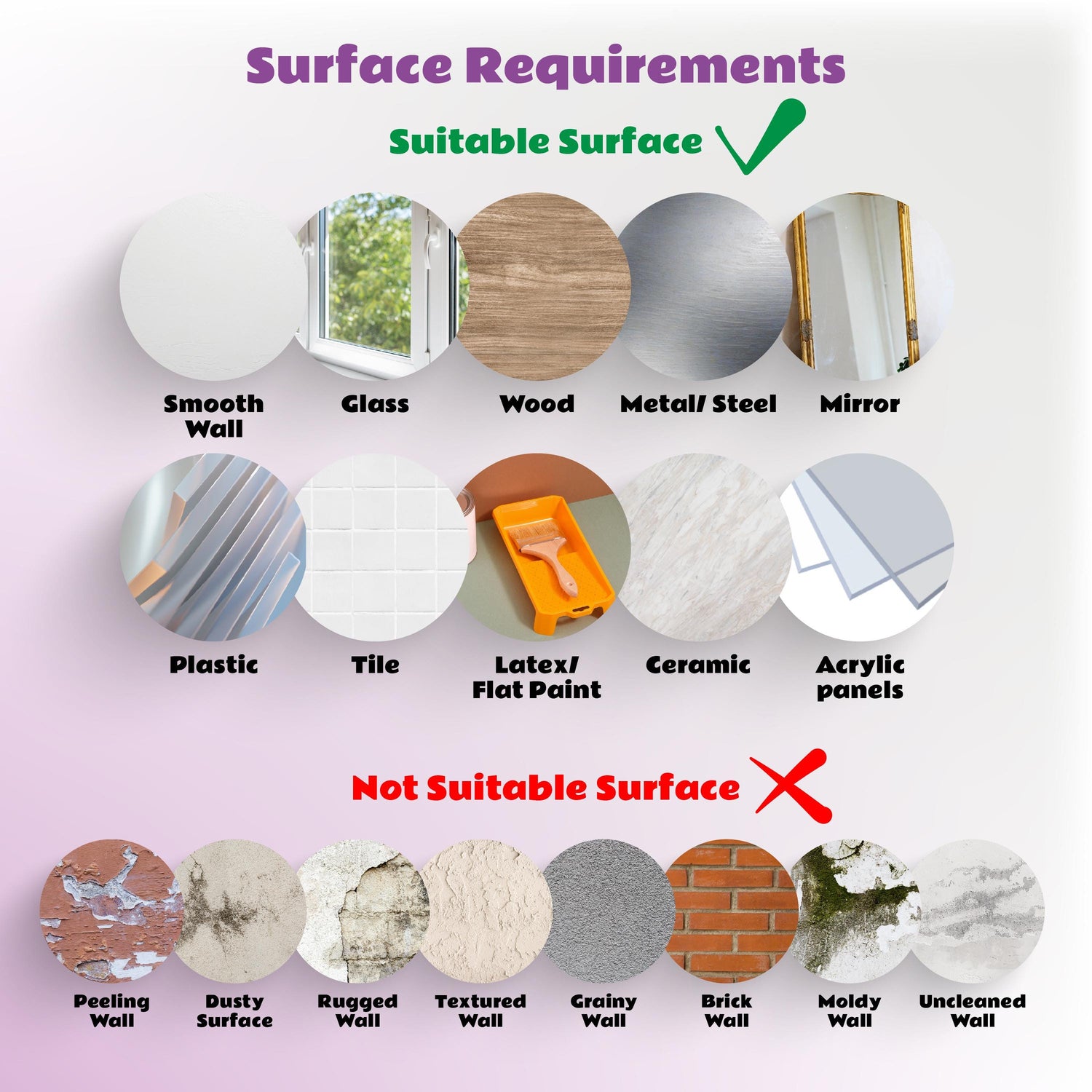 1. Pinna ettevalmistamine:Pind peab olema puhas, kuiv ning tolmu- või rasvavaba. Pühkige sein kuiva lapiga ja laske värskelt värvitud pindadel enne kleebise pealekandmist vähemalt 3-4 nädalat taheneda.
