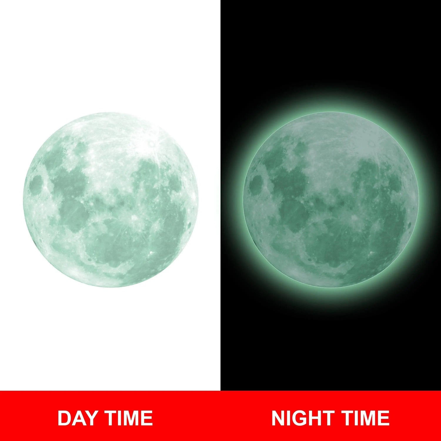 Meie pimedas helendav kuu seinakleebis on loodud kestma ja on valmistatud spetsiaalse valgust salvestava kilega, mis neelab päevasel ajal ultraviolettkiirgust ja nähtavat valgust, luues vapustava rohelise sära, mis kestab kaua ööni. Lisaks tagab kõva plastmaterjal kiire valguse neeldumise, pikema järelhõõgumise ja pikema kasutusea.