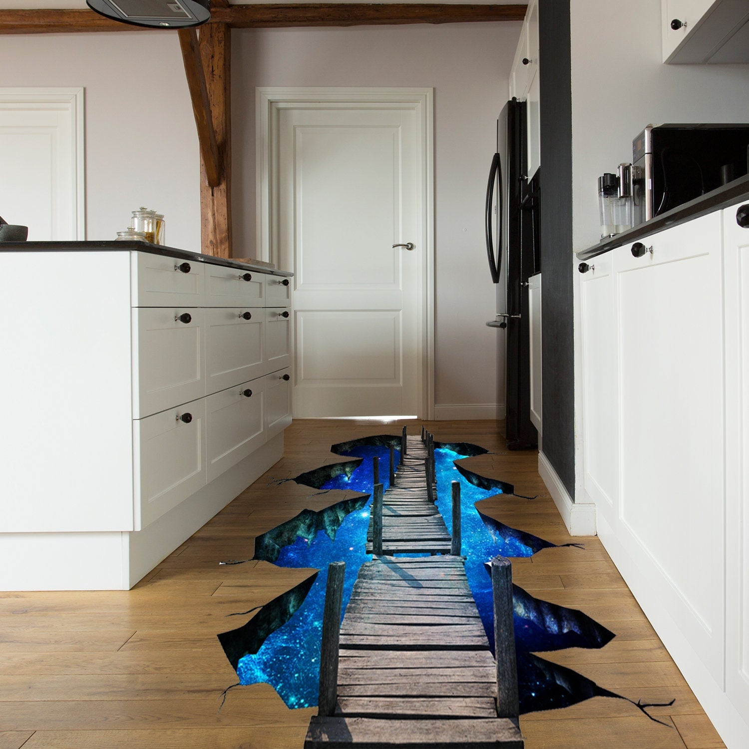 3D Floor Space Portal Hole Decal - Galaxy Art Sticker Decor For Kid Teen Living Room Bathroom