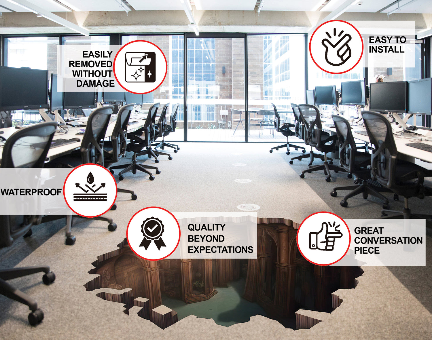 Oma loomingulise disaini ja realistliku illusiooniga on see põrandakleebis tõeline kunstiteos. See on suurepärane viis oma kodu sisekujundusele unikaalseks lisamiseks ja avalduse tegemiseks. Ärge leppige tavalisega, kui teil on lummava 3D Illusion illuminaatori põrandakleebise abil midagi tõeliselt lummavat. Tellige oma juba täna ja muutke iga ruum maagiliseks ruumiks.