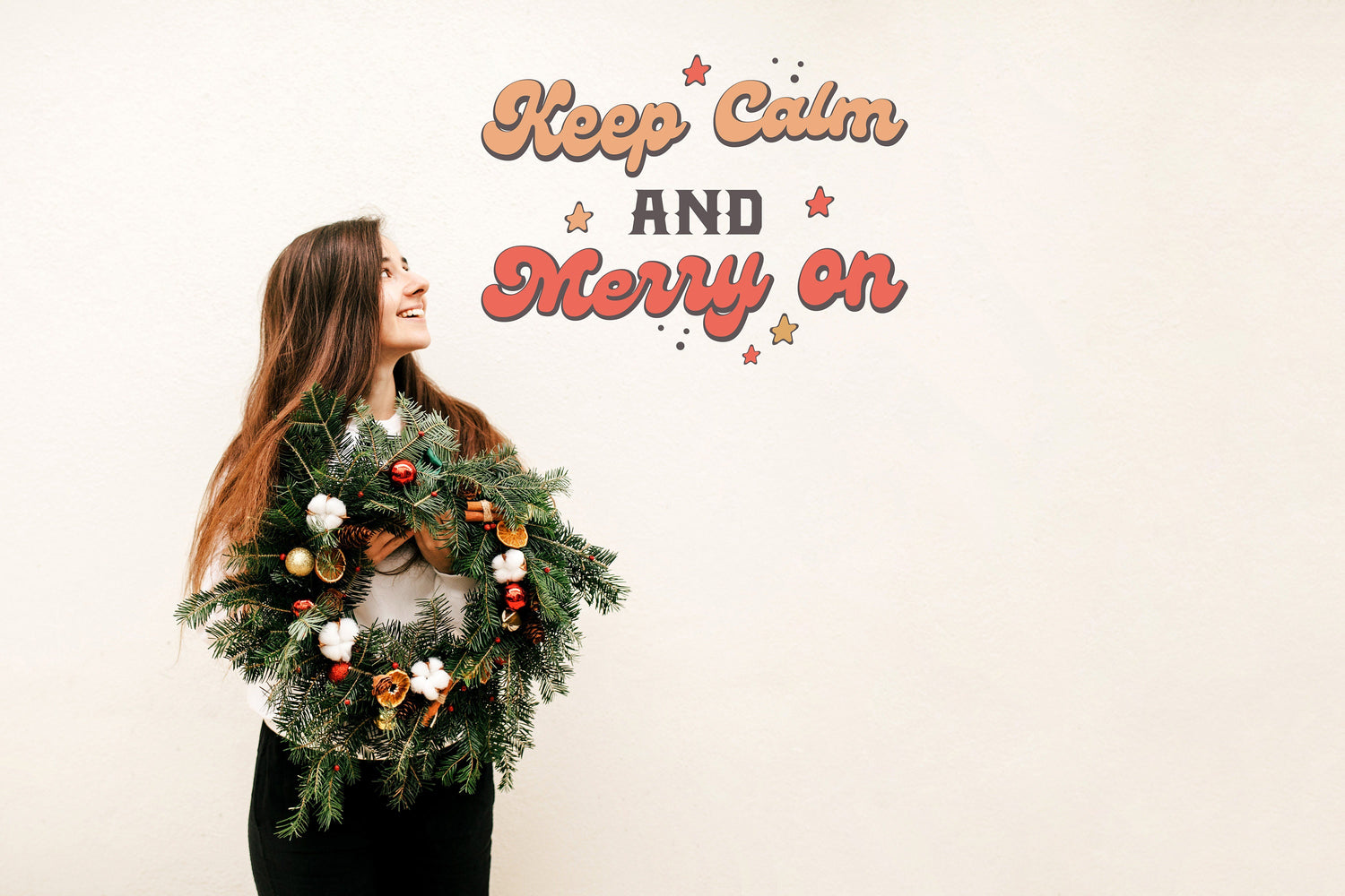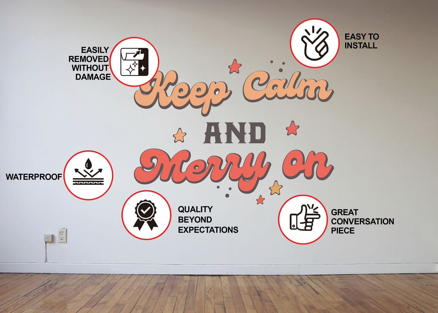Lisage oma pühadekaunistusele veidi kapriissust ja rõõmu meie jõulupakkumiste seinakleebise "Keep Calm and Merry On" abil. See mänguline ja värviline tekstikleebis sobib suurepäraselt teie elutoa sisekujundusse rõõmsa õhkkonna lisamiseks, ergutades pühadehooajal rõõmsat meeleolu.