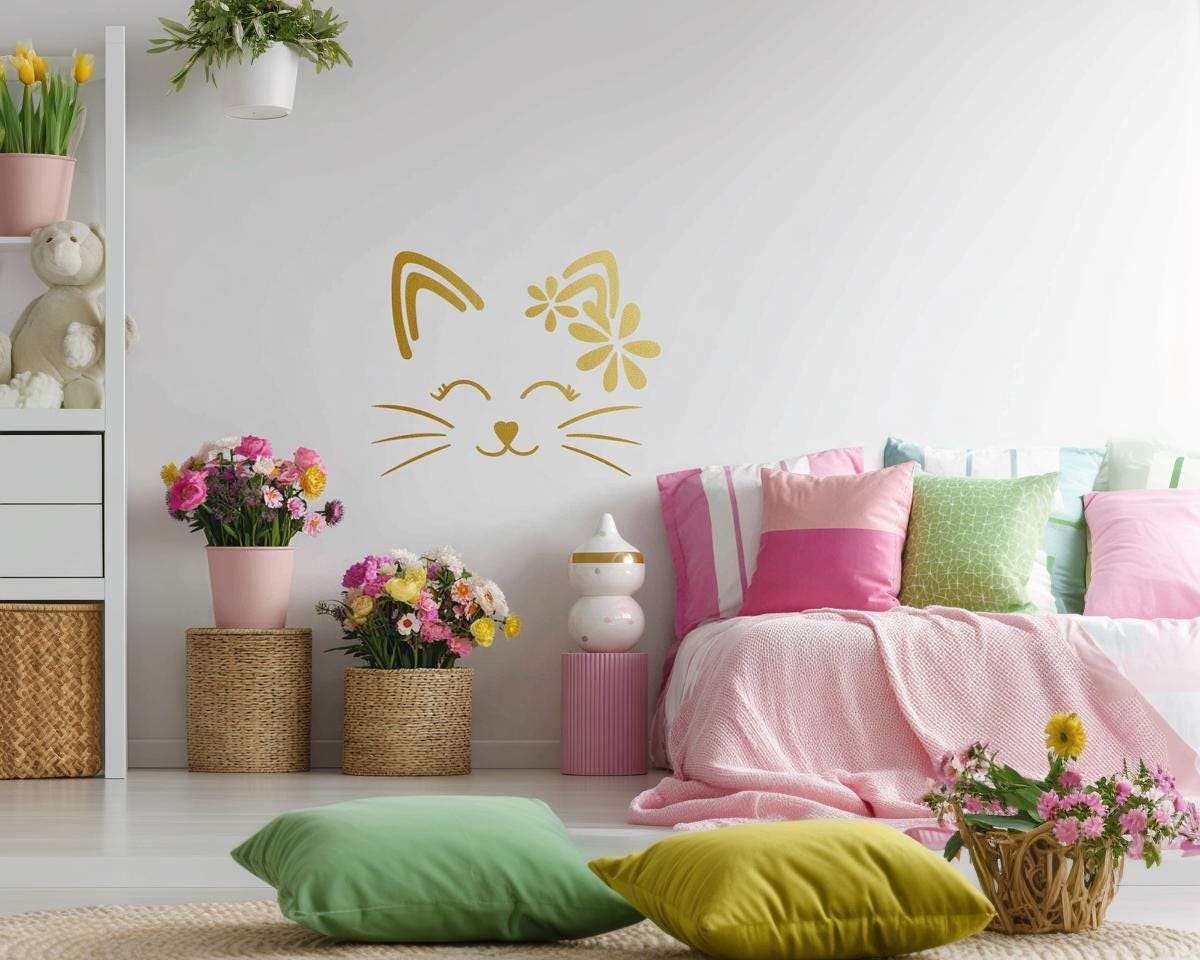 See võluv kassikujuline seinakleebis lisab igale ruumile mängulise ja armsa hõngu. Armsa kassi näo, vurrude ja lilleliste kõrvaaktsentidega kleebis sobib ideaalselt lastetuppa, mängutuppa või igasse ruumi, mis vajab sooja ja rõõmsat meeleolu.