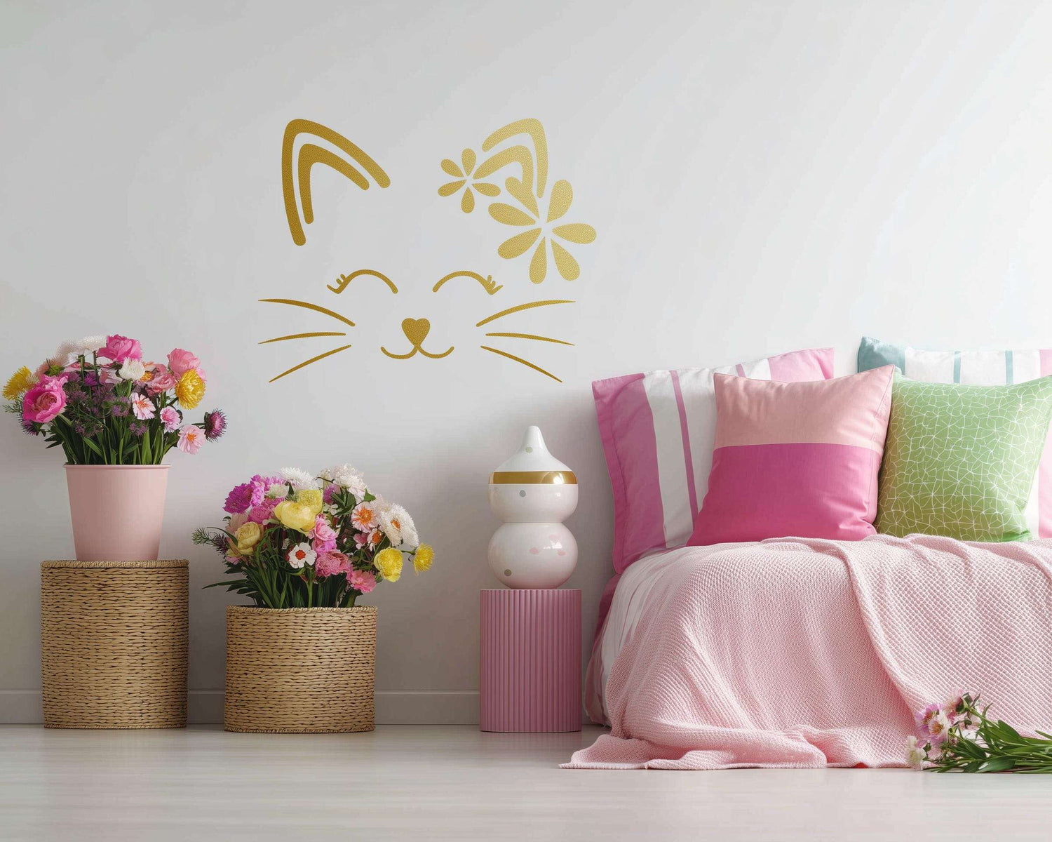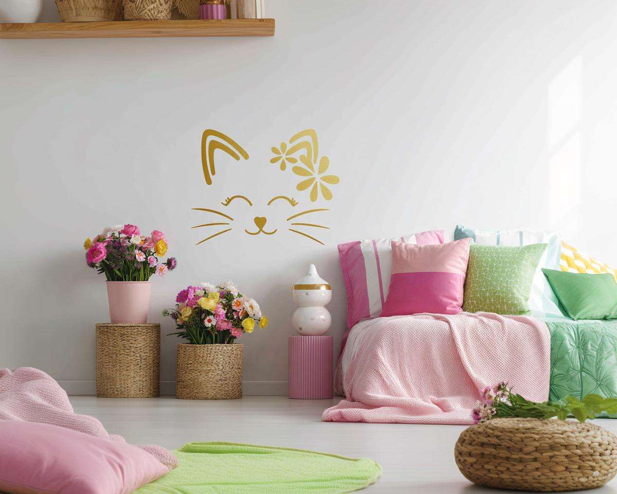 Armas kassi seinakleebis | Lillelise kassi vinüülkleebis | Lastetoa seinakunst | Eemaldatav kiisu seinakaunistus | Tüdrukute toa seinakleebis | Kassi näo kleebis