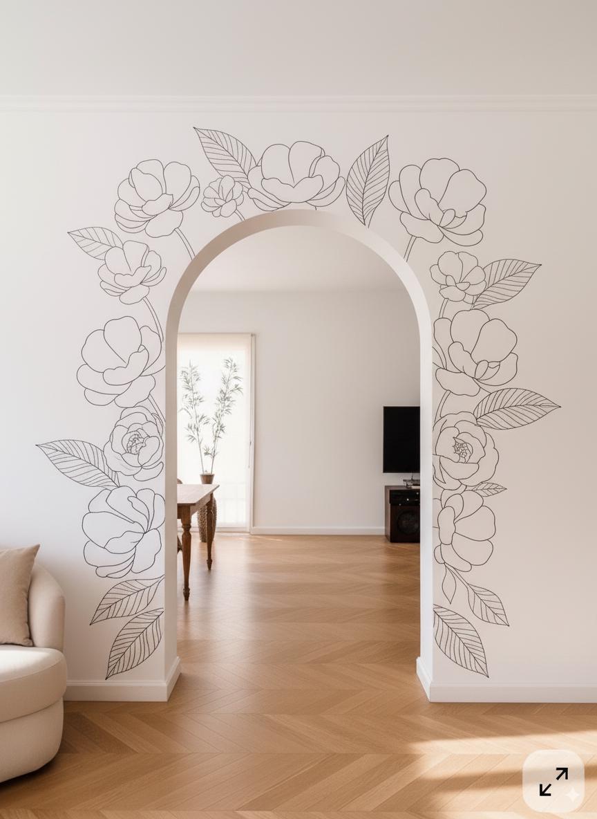 See elegantne lilleline seinakleebiste komplekt sisaldab õrnade kontuuridega lilli ja lehti, mis on loodud peeglite, mööbli või aktsentseinte raamimiseks. Disain toob igasse interjööri moodsa botaanilise hõngu, luues otse seinale käsitsi joonistatud seinamaali efekti.