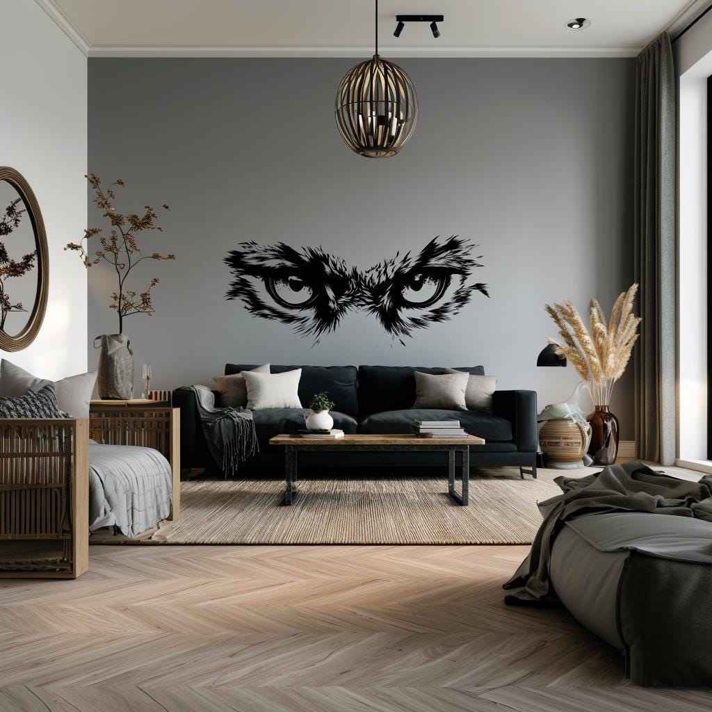 Lisa oma interjööri dramaatiline pilgupüüdev element selle julge seinakleebisega, millel on kujutatud Pallase kassi (Manuli) intensiivset pilku. Siluettstiilis kunstiteos tabab looma metsiku olemuse ja pakub minimalistlikku, kuid samas võimsat disaini, mis sobib ideaalselt elutubadesse, kontoritesse või loomingulistesse ruumidesse.
