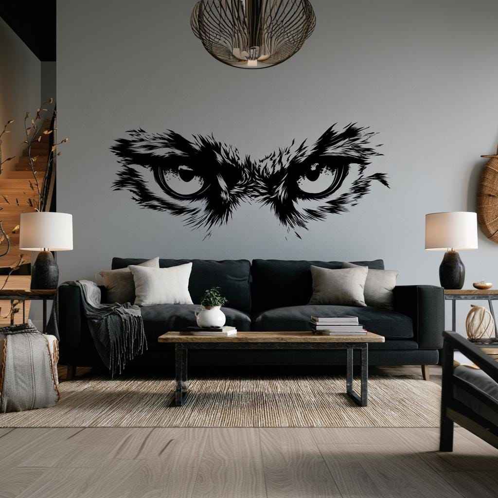 Pallas kassisilmade seinakleebis | Manul Eyes vinüülkleebis | Metsiku kassi silueti seinakunst | Minimalistlik loomakujuline seinakaunistus | Metsiku pilguga seinakleebis