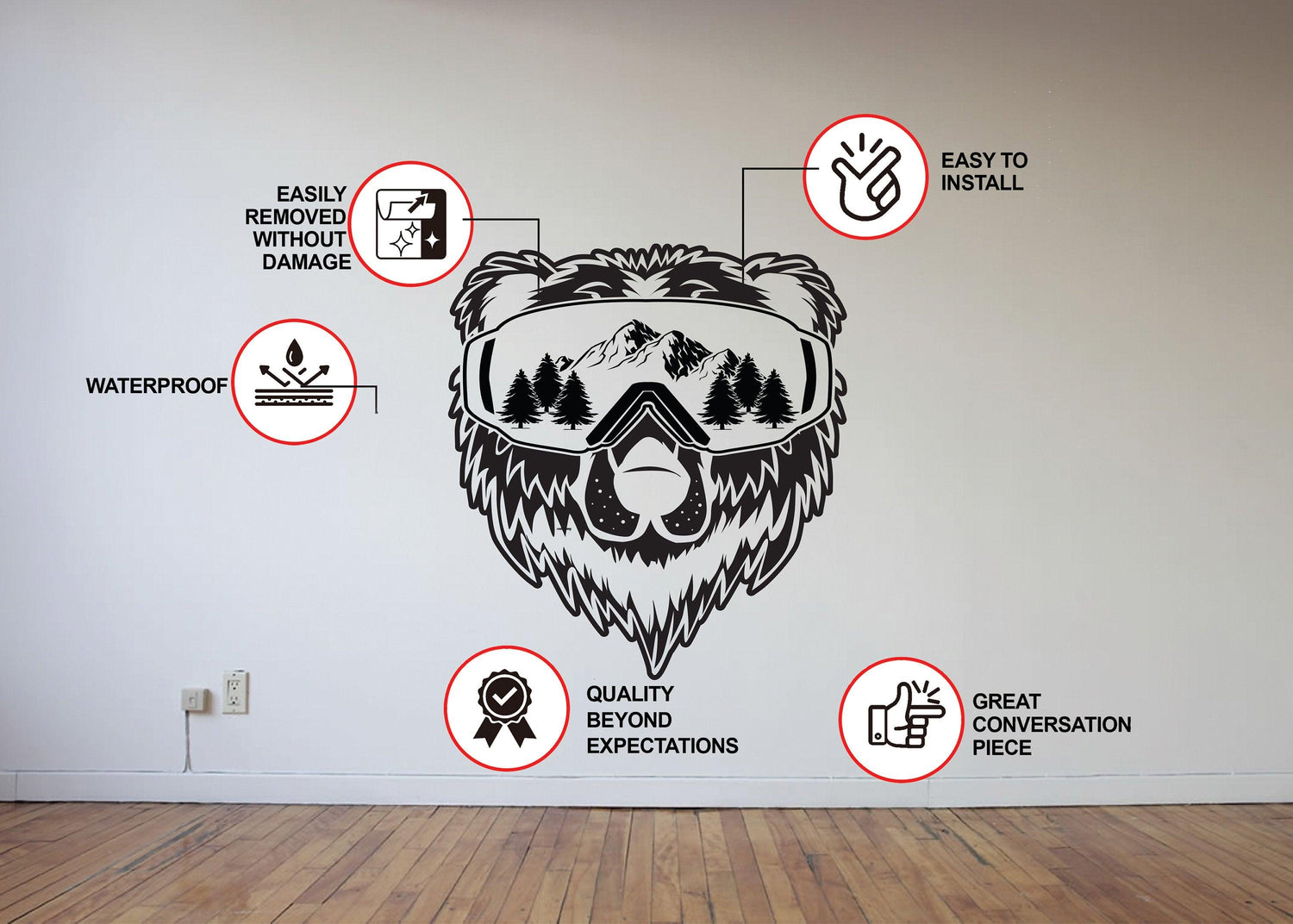 Vinüülseinakleebis – Wyomingi osariigi, karu ja mägede graafiline kleebis