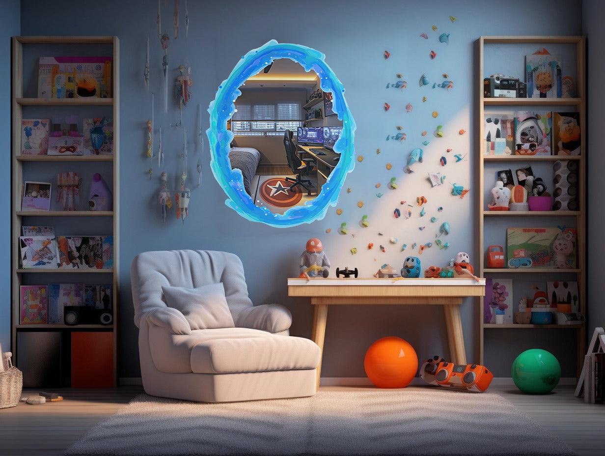 Kohandatud sinised ja oranžid portaali seinakleebised, mille sees on teie enda pilt – isikupärastatud foto sees, erksad Aura ovaalsed kleebised mängijate ja geekide tubade sisekujunduseks