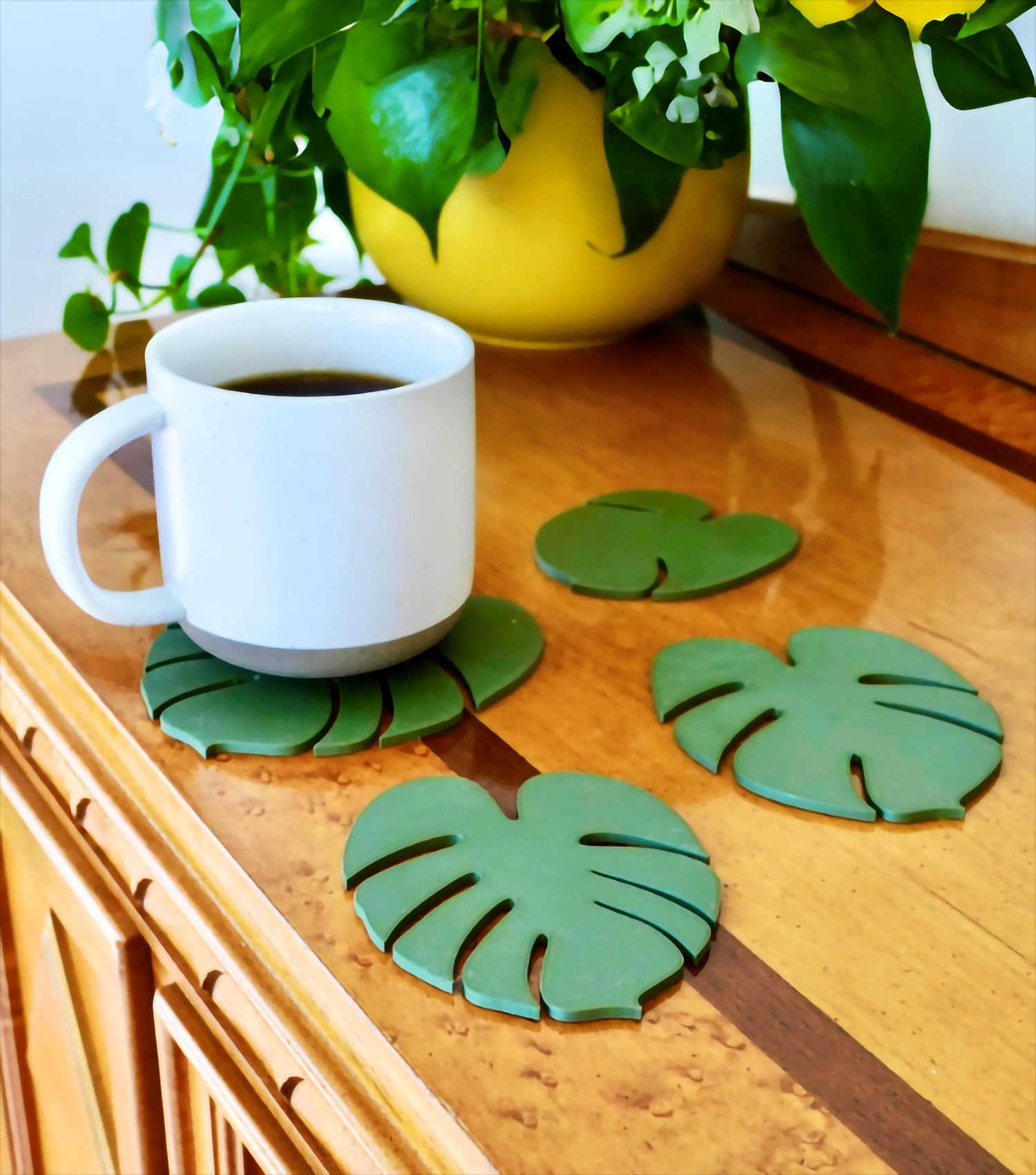 Monstera Leaf Coaster komplekt | Magnetic Coaster taimehoidik | 3D-prinditud aluste salvestusruum | Stiilne kodukaunistus koos funktsionaalsete alustega