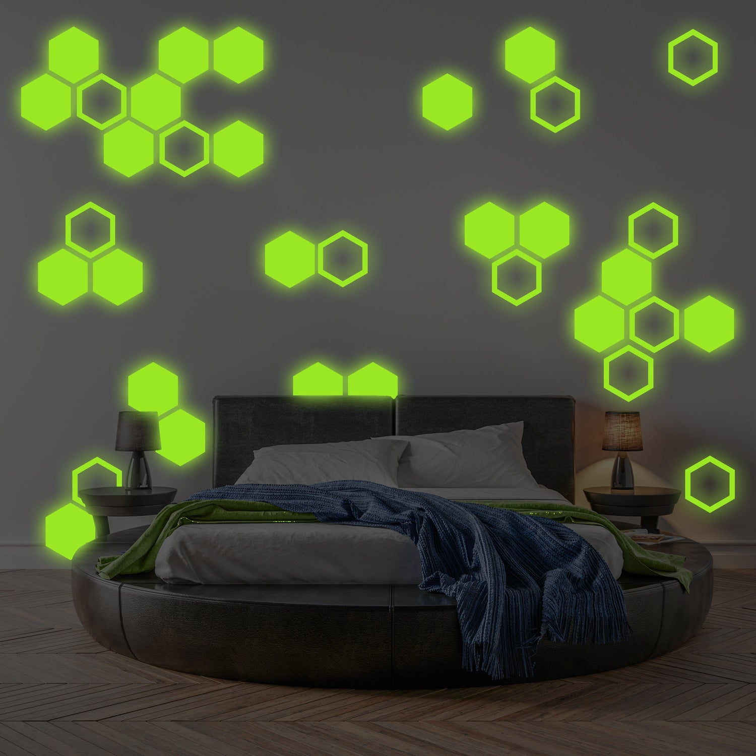 Diese Aufkleber sind aus hochwertigen Materialien gefertigt und lassen sich leicht anbringen und entfernen. Sie eignen sich daher perfekt für Mieter oder alle, die ihre Einrichtung häufig ändern möchten. Das Wabendesign verleiht jedem Raum eine moderne und stilvolle Note, während die im Dunkeln leuchtende Funktion für ein lustiges und verspieltes Element sorgt.
