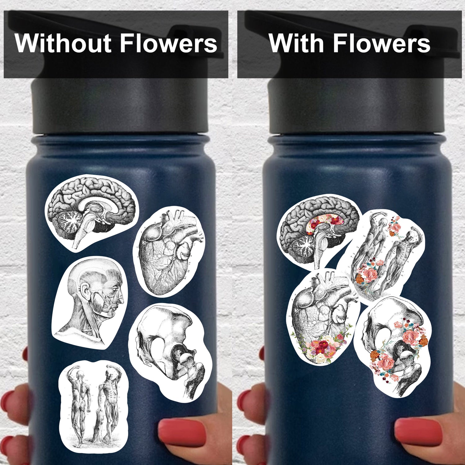 Anatomie-Aufkleber für Hydroflask – Anatomische Aufkleber für Wissenschaftsliebhaber und Medizinstudenten - Mit Blumen / Weiss ist auf Lager und wird versandt, sobald es wieder verfügbar ist