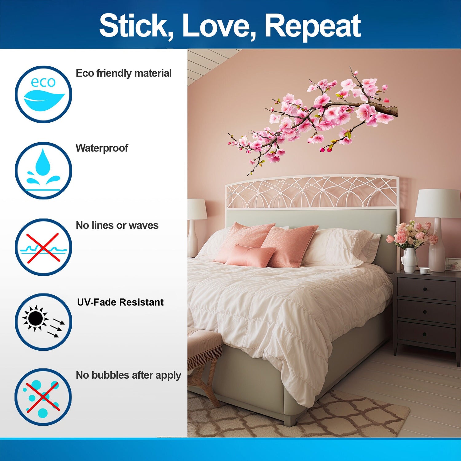 Kirschblüten Eckbaum Wandtattoa - Kinderzimmer Vinyl Sticker mit Blüten Rosa Blumen Sticker