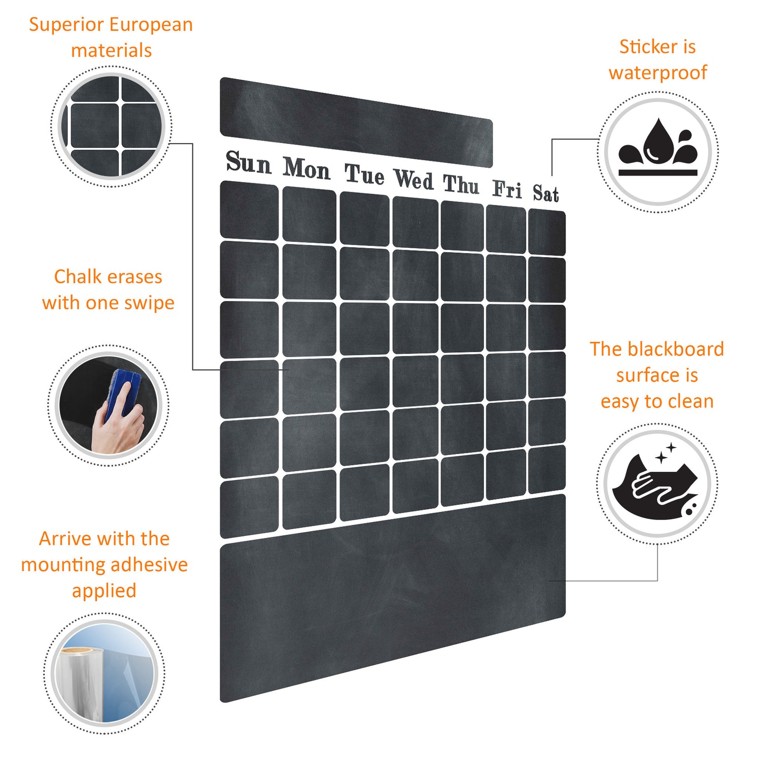 Der Wandkalender-Aufkleber „Küchentafel“ für den Kühlschrank ist eine einzigartige und praktische Ergänzung für jede Küche. Dieser vielseitige Aufkleber lässt sich leicht auf jeder glatten Oberfläche wie einem Kühlschrank oder einer Wand anbringen und verwandelt sie sofort in eine funktionale Tafel. Der Aufkleber verfügt über ein monatliches Kalenderlayout, mit dem Sie wichtige Daten und Termine stilvoll und organisiert im Auge behalten können.