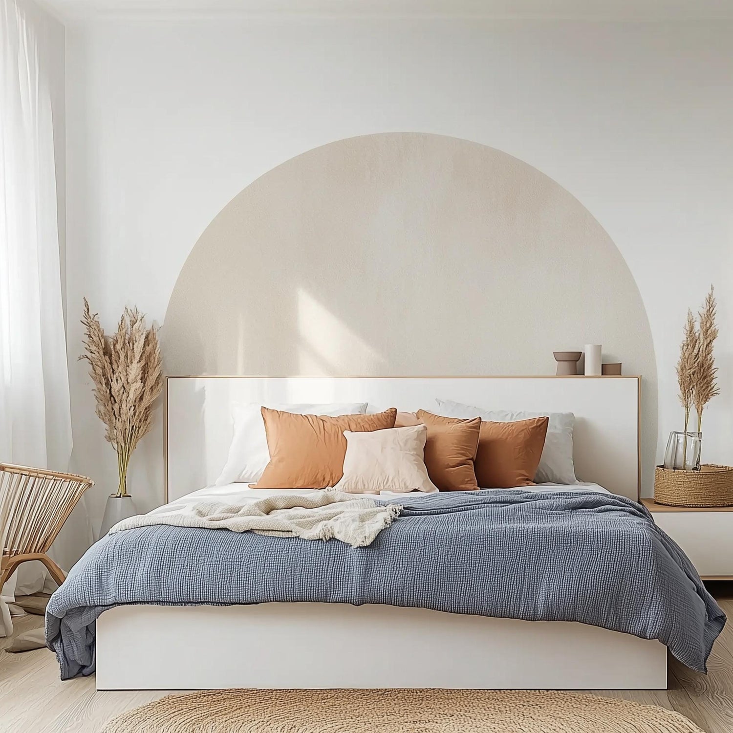 Minimalistlik Boho voodipeatsi kleebis | Neutraalne poolringi seinakleebis | Voodikaare koorimine ja pulk | Elegantne pastellkreem magamistoa kaarekujundus