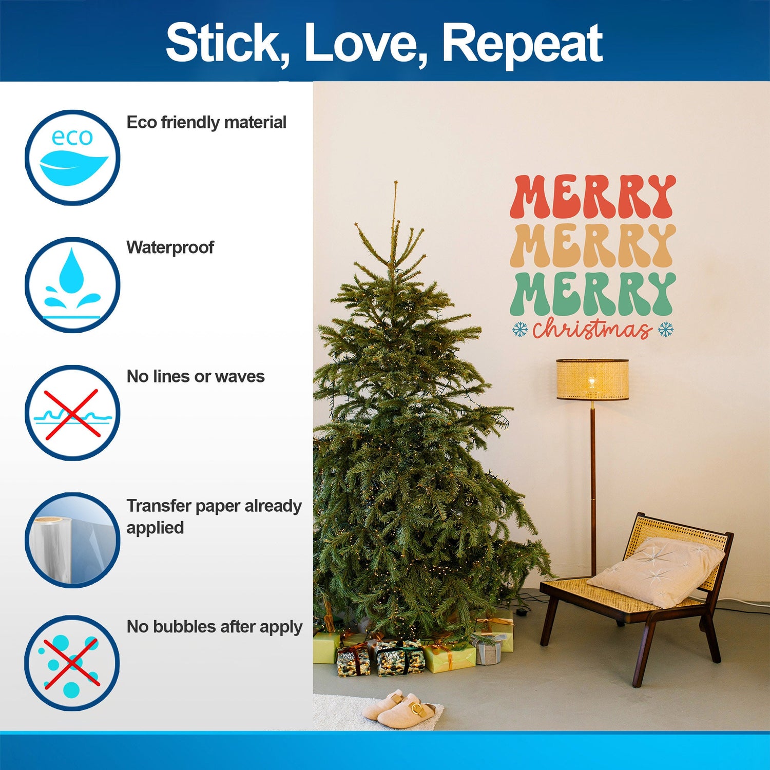 Dieses Wandtattoo ist mehr als nur eine Dekoration; es ist eine Feier des fröhlichen und liebevollen Geistes von Weihnachten. Die Botschaft „Frohe, fröhliche, fröhliche Weihnachten“ spiegelt das Glück und die Zusammengehörigkeit wider, die die Weihnachtszeit mit sich bringt, und macht Ihr Zuhause zu einem entzückenden Ort, um wertvolle Erinnerungen mit Ihren Lieben zu schaffen.