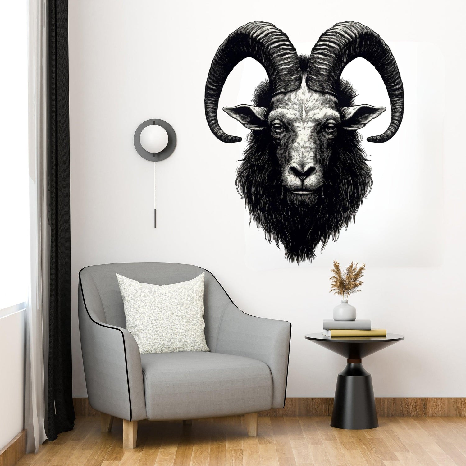 Realistischer surrealer Widderkopf Wandaufkleber - Detaillierte Tintenillustration Kunstaufkleber