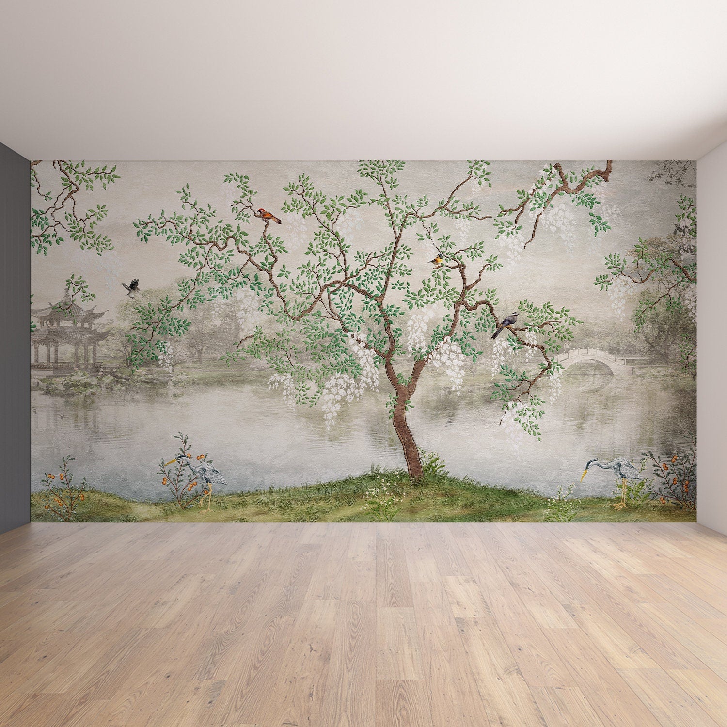 Toile Schlafzimmer Chinoiserie Tapete Garten Vintage Aufkleber - Grau Klebetapete Druck Wohndeko