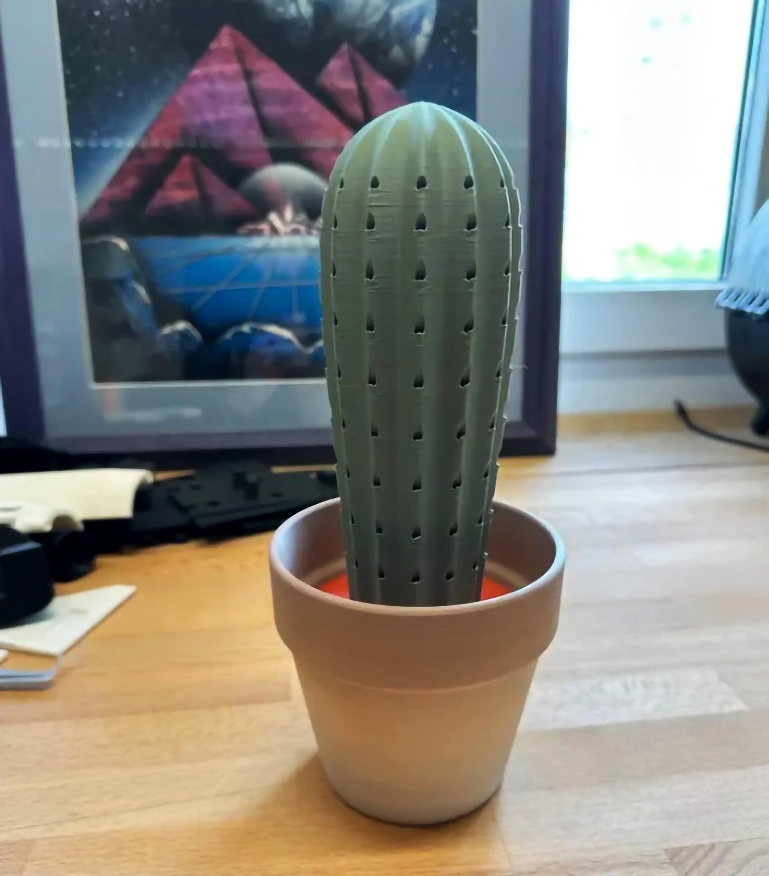 - **Realistlik disain:** kujundatud nagu klassikaline potikaktus, mis ühendab stiili praktilisusega.