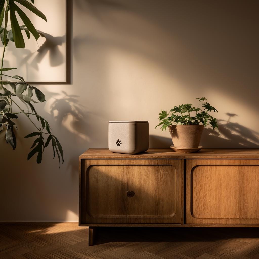 See moodne kandiline lemmiklooma urn on disainitud rahulikuks ja tagasihoidlikuks mälestusesemeks teie armastatud lemmikloomale. Selle pehmete servadega kuubikujuline vorm ja väike süvendatud käpajälg loovad õrna tasakaalu emotsionaalse tähenduse ja kaasaegse disaini vahel, muutes selle sobivaks moodsatesse kodudesse, ilma et see tunduks morn või raske.