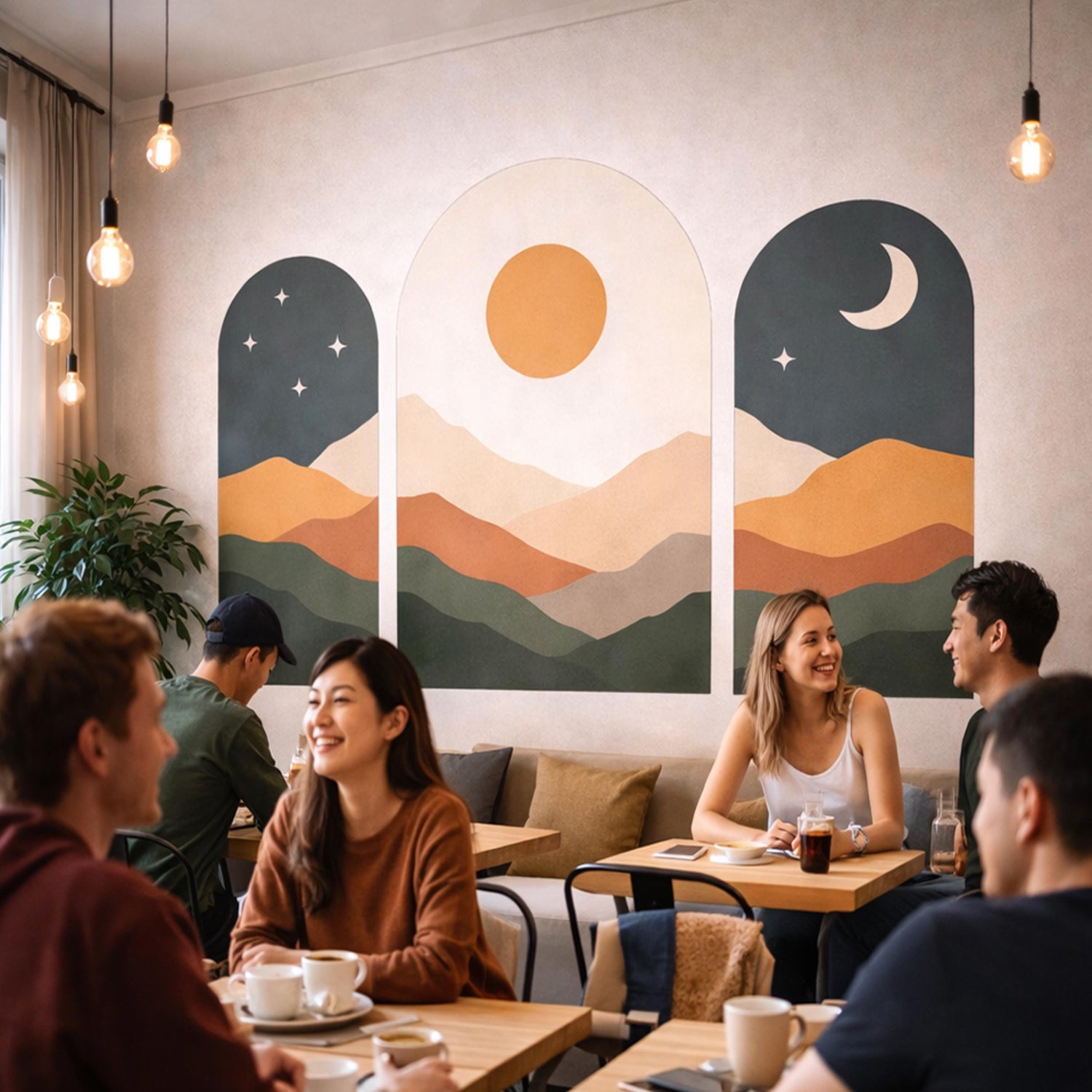 * On-Trend Aesthetic: Features the popular "Arched Window" look with a palette of terracotta, sage green, and warm sand.