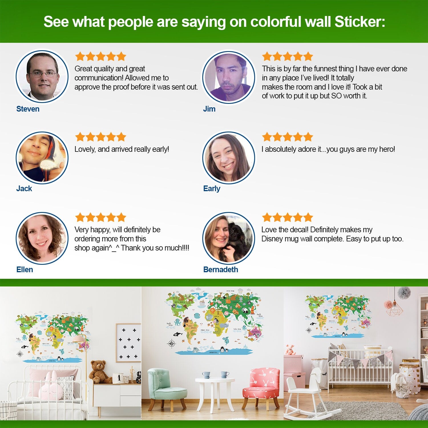 Wandtattoo Weltkarte für Kinder - Landtierzimmer Dekor Vinyl Aufkleber fürs Kinderzimmer