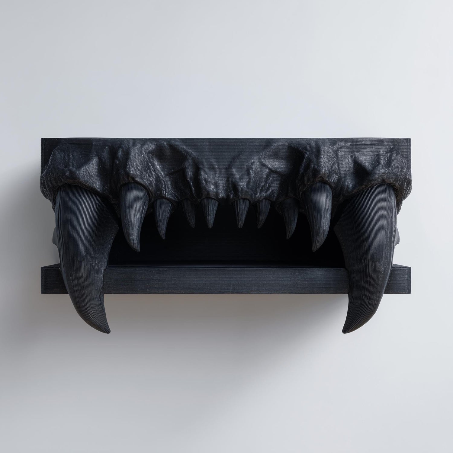 3D Printed Vampire Fangs Wall Shelf | Gothic Monster Jaw Decor | Dark Fantasy Floating Ledge for Horror Bedroom, Gaming Room or Hallway