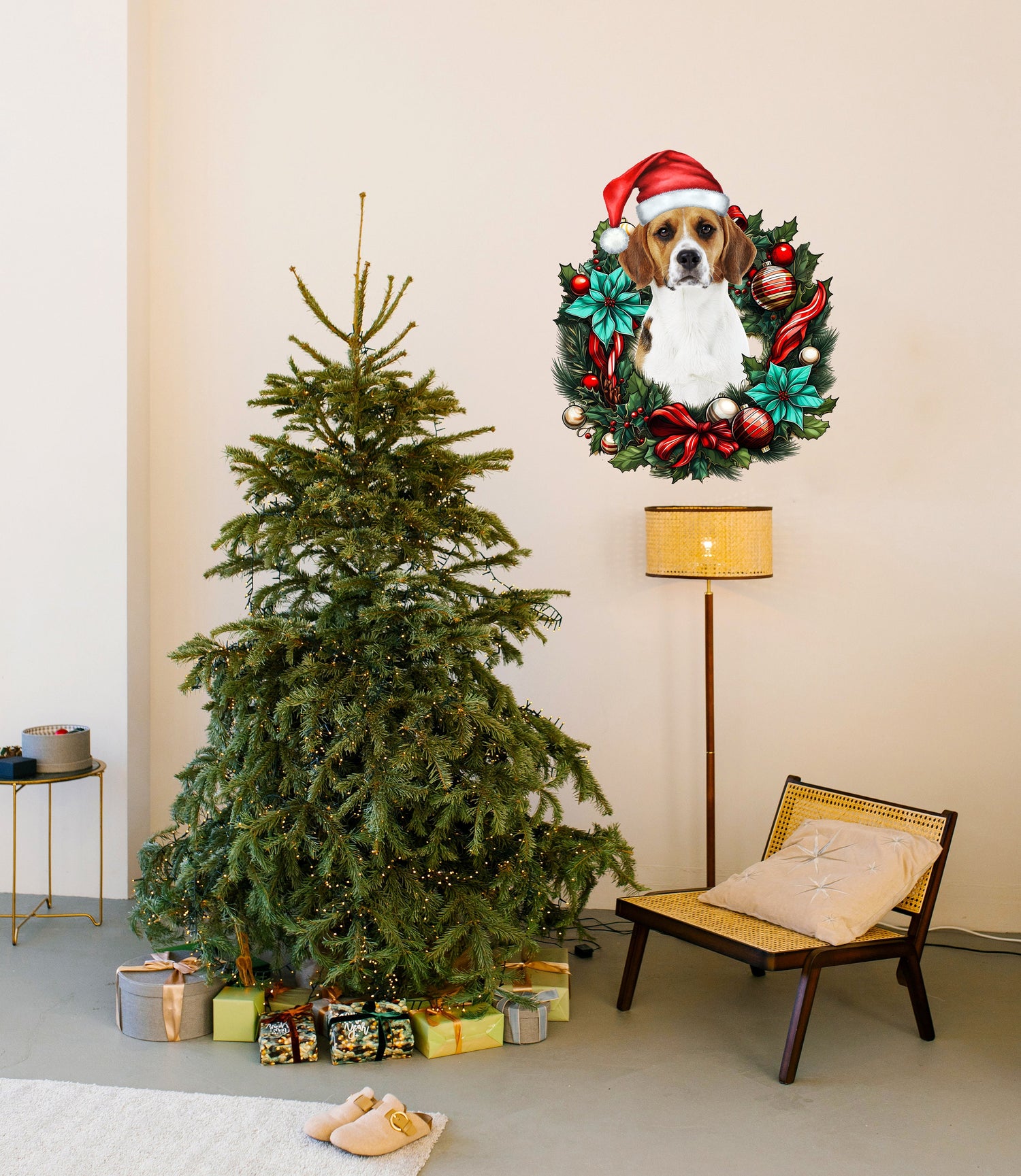 This Custom Pet Christmas Wreath Wall Decal is not just a decoration, but a memorable gift for pet lovers or a delightful way to treat yourself. It's a heartwarming blend of personal sentiment and festive cheer, making your holiday decor feel incredibly special and unique.