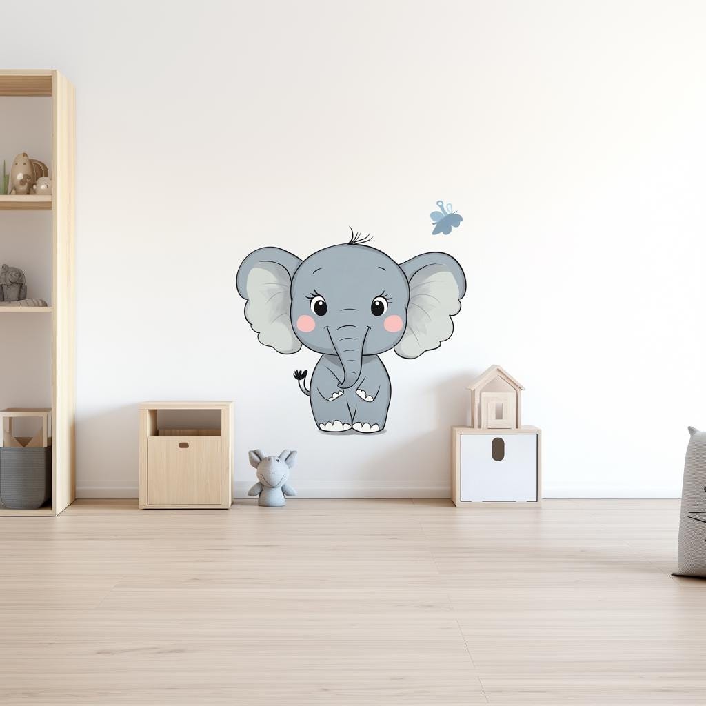 Add an adorable touch to your little one’s room with this **cute elephant wall decal sticker**! Featuring a sweet, cartoon-style elephant with soft pastel details and a playful butterfly accent, this decal is perfect for nurseries, baby rooms, or kids’ playrooms.