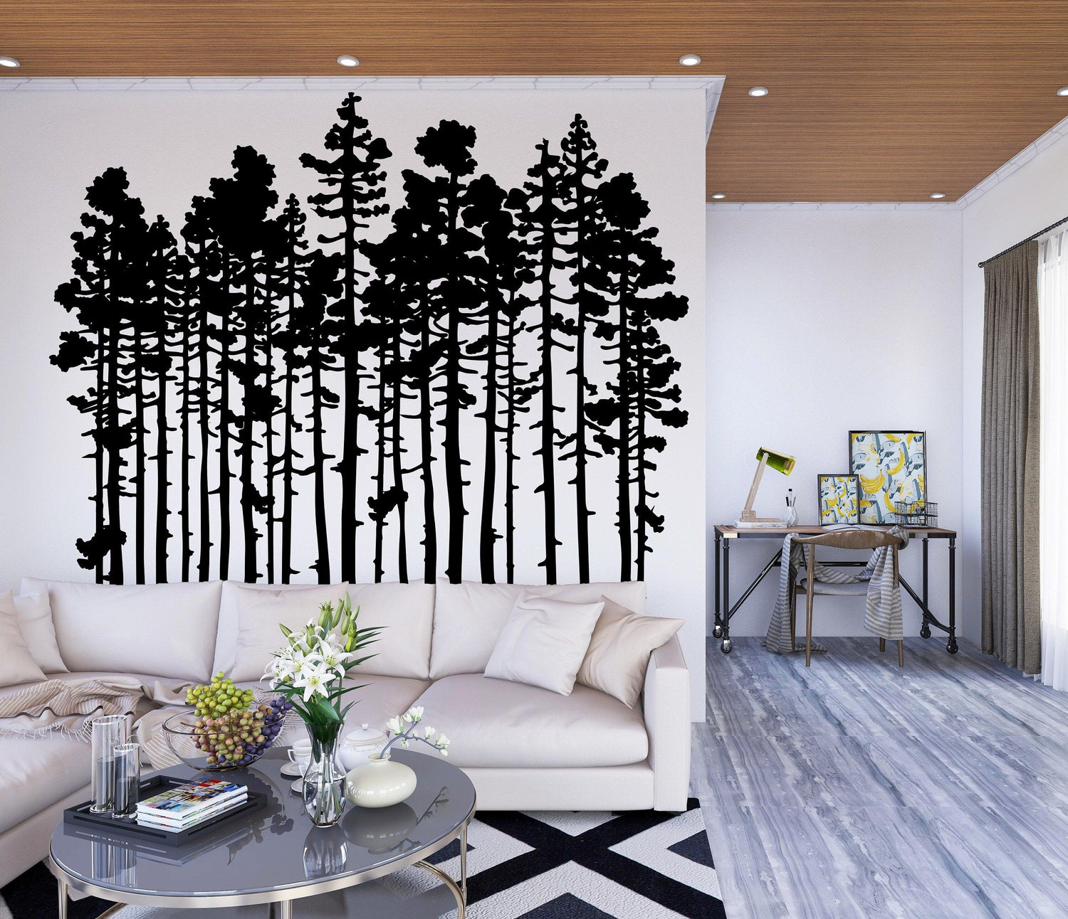Forest Silhouette Wall Sticker | Black Pine Tree Wall Decal | Nature-Inspired Home Decor | Rustic Living Room Wall Art | Woodland Bedroom