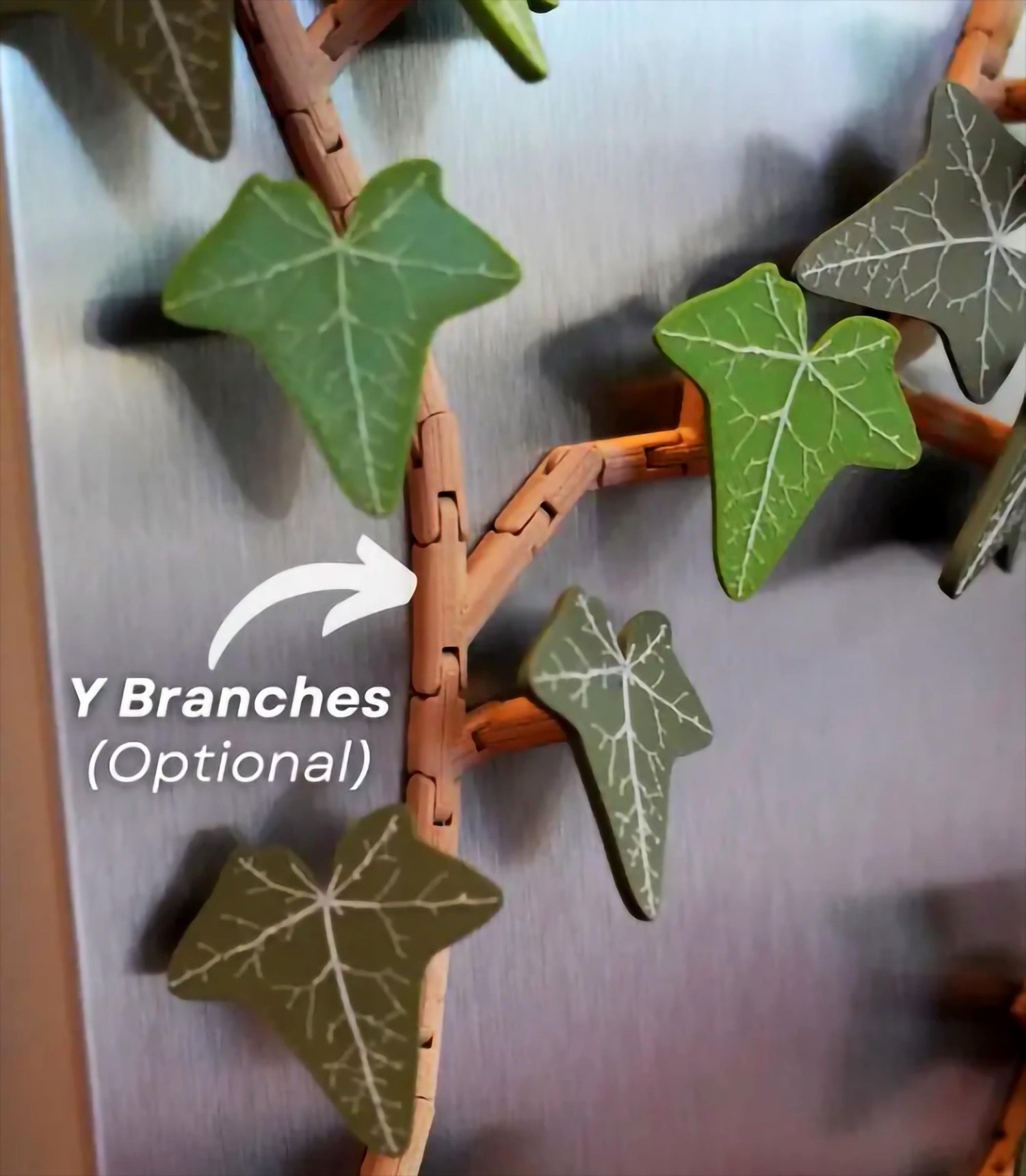 Each **magnetic ivy leaf** can be detached and used individually, or slide items beneath the stem to hold them securely in place. With a modular design, you can snap additional segments together, adjusting the length and layout to fit your style. Plus, the optional Y-branches allow you to expand the ivy in multiple directions, creating a realistic climbing vine effect.