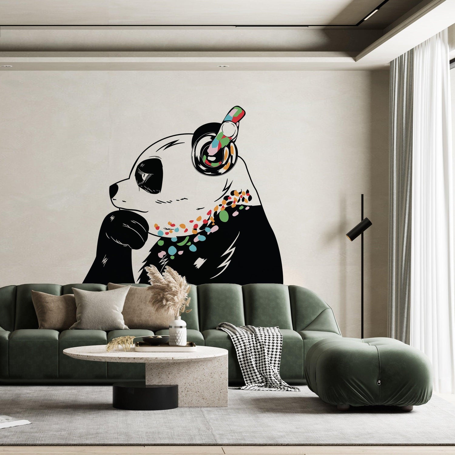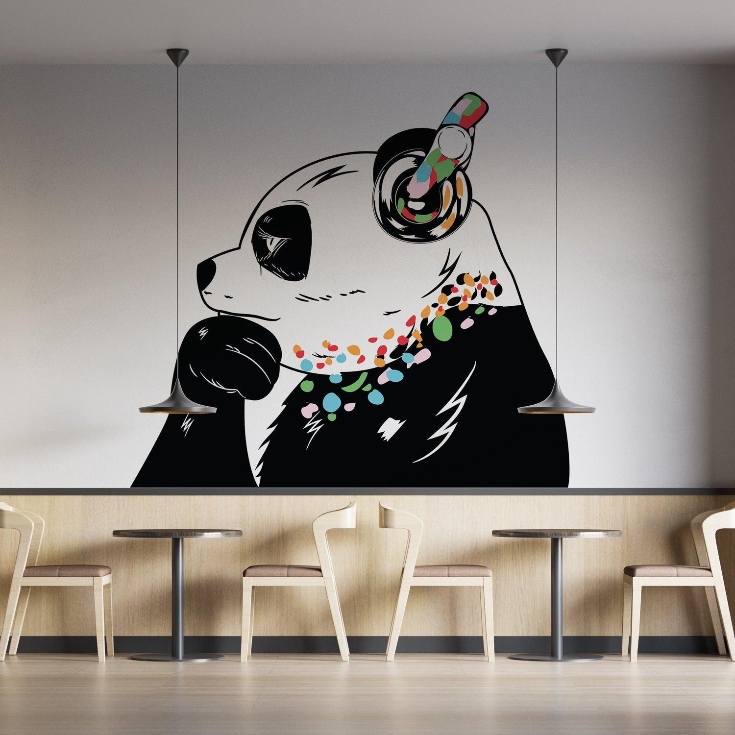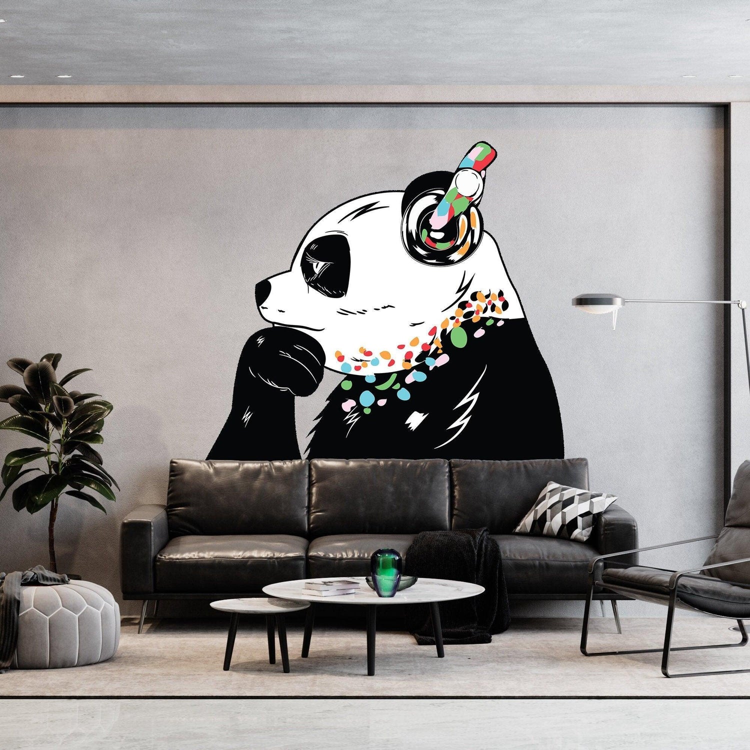 Panda Wall Art Sticker - Thinking Dj Panda Bear Head Headphones Vinyl Decal