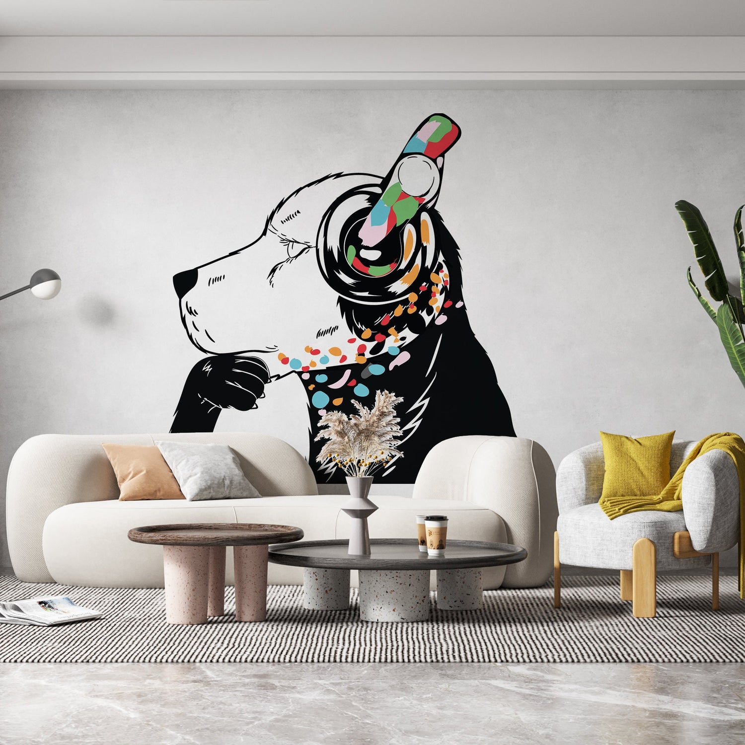 Dog Wall Art Sticker - Thinking Dj Puppy Head Headphones Vinyl Decal - 24 x 16 inches / Left (Main photo) is backordered and will ship as soon as it is back in stock.
