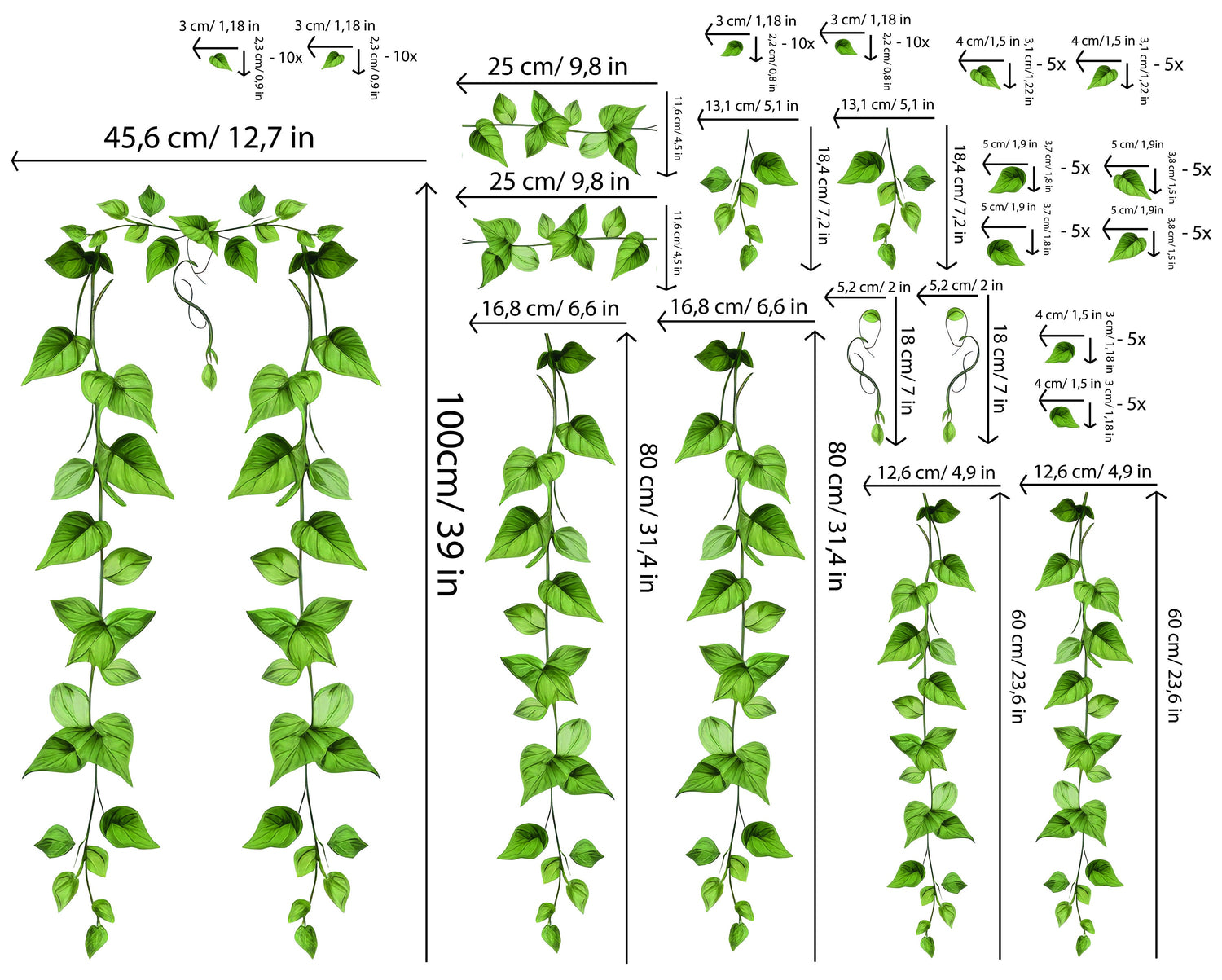 Hanging Vine Wall Sticker - Green Ivy Leaves Decal - Versatile Floral Decor for Living Room