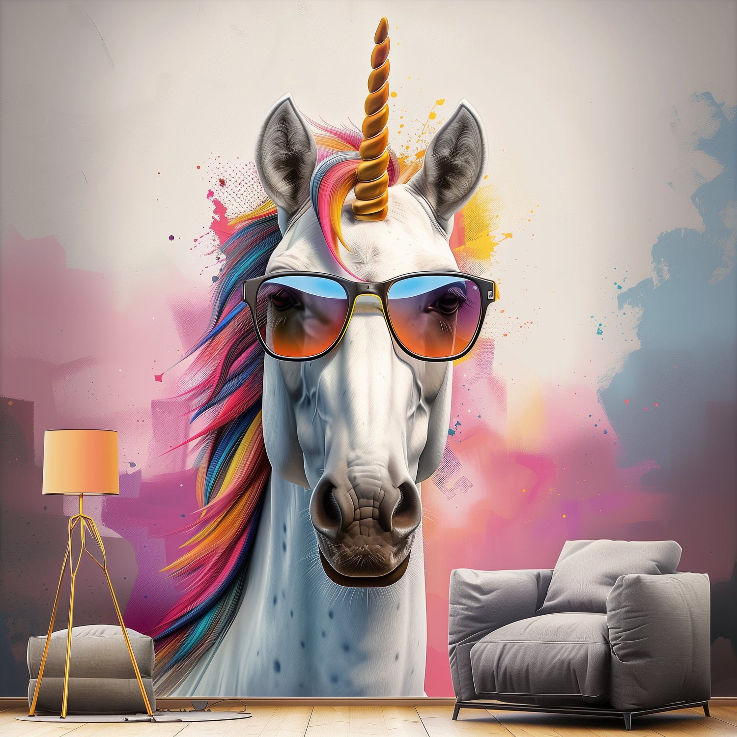 Transform your space with our Photorealistic Graffiti Unicorn Wall Sticker, featuring a striking and highly detailed design of a unicorn adorned with sunglasses. This vibrant, graffiti-inspired art piece showcases a colorful mane and a whimsical expression, making it an eye-catching addition to any modern or playful interior.