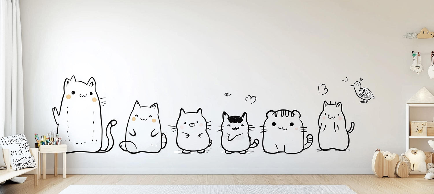 Cute Cat Wall Decal Set | Cartoon Animal Sticker Art for Kids Room | Cat Wall Stickers | Nursery Playroom Decor | Renter Friendly Decals