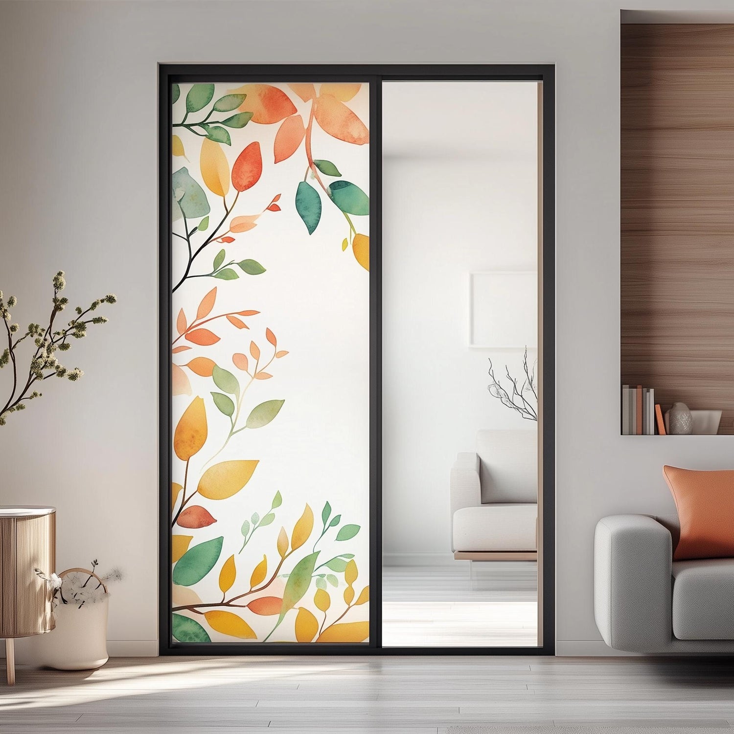 Muutke oma klaaspindu selle elegantse **värvilise lehekujundusega mattklaaskilega**. See söövitatud kile, mis sobib ideaalselt teie akendele, lükandustele või klaasvaheseintele privaatsuse ja dekoratiivse hõngu lisamiseks, ühendab funktsionaalsuse stiiliga. Jääkattega viimistlus hajutab kaunilt valgust, säilitades samal ajal teie privaatsuse, ja elav akvarell lehemuster lisab igale ruumile moodsa loomuliku võlu.