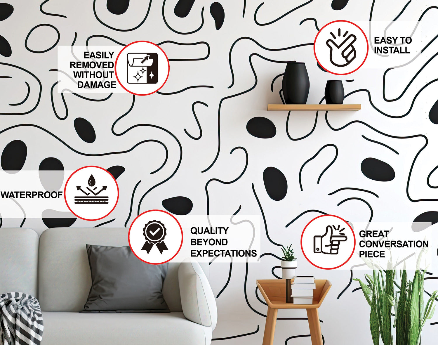 Moodsad mustad seinakleebised – dünaamilised joonega kleebised stiilse interjööri jaoks
