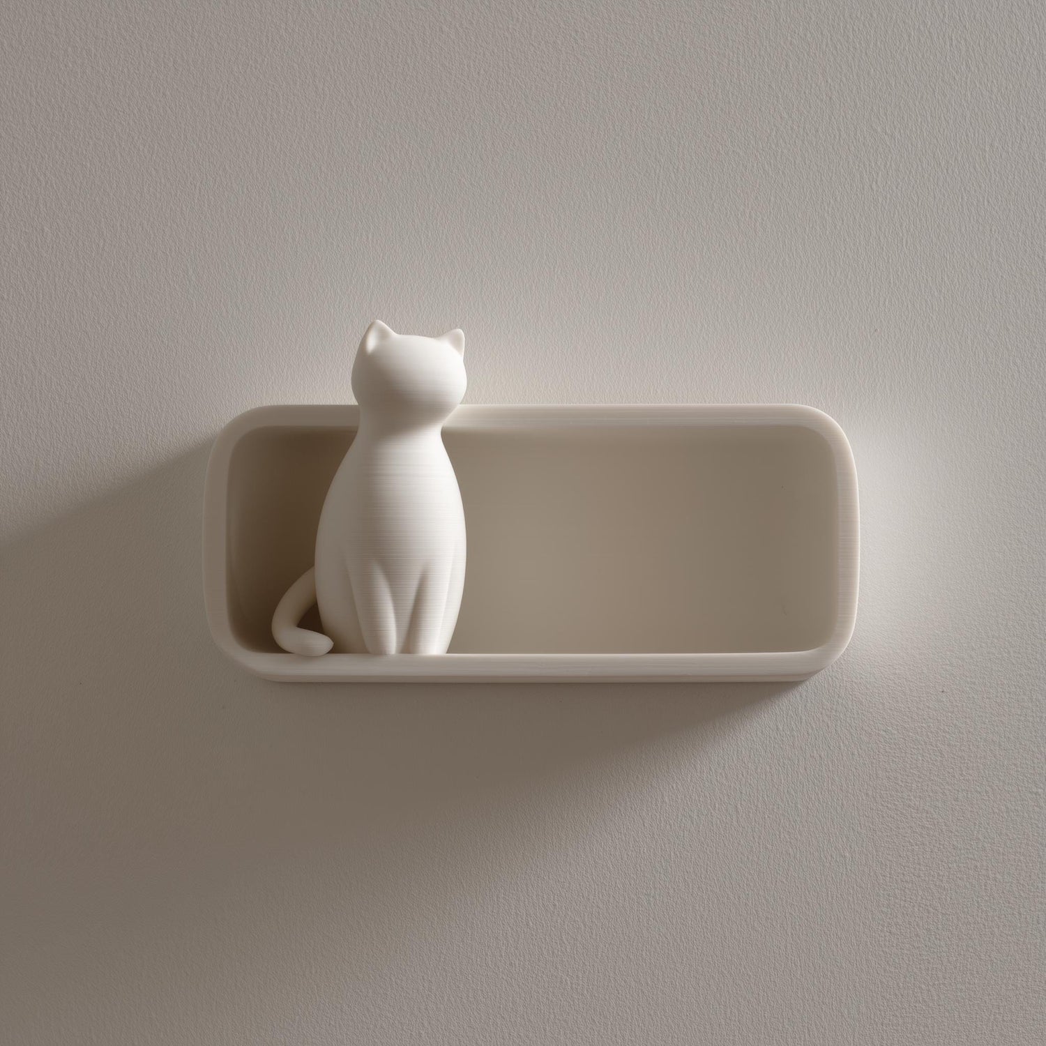 * Minimalist sitting cat figure built into a smooth rounded tray shelf