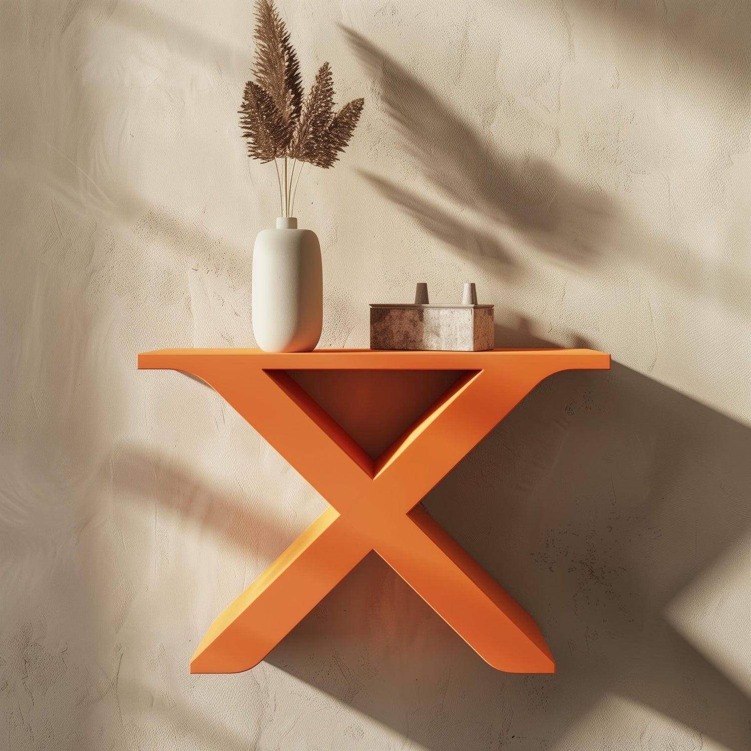 This 3D printed X-shaped wall shelf brings a bold geometric touch to modern interiors. Its intersecting design combines symmetry and simplicity, creating a functional art piece perfect for displaying plants, candles, or decorative objects.